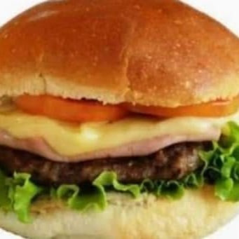 Pão bola, hambúrguer, queijo, presunto,ovo, calabresa, chedaar, Catupiry, tomate, cebola, alface, ketchup, mostarda, maionese
