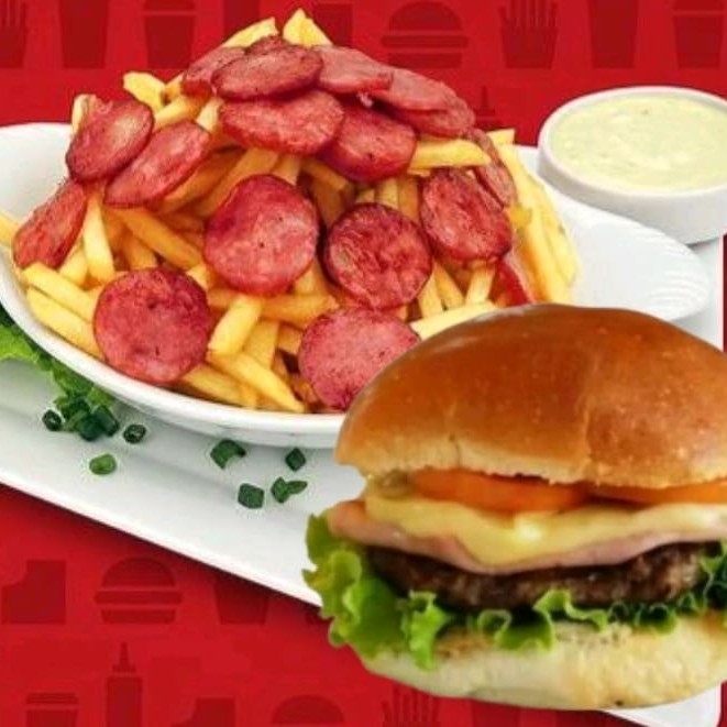 1 X-burgue E 300ml De Batata Frita E Calabresa