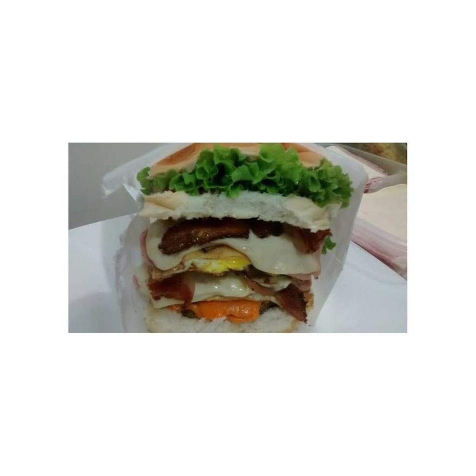 Bao bocaõ recheado com 4 hamburger .4 fatia de mussarela.4 fatia de presunto .4 salsicha.bacom.calabresa.ovos.tomate.cebola.alfaçe.ketchup.maionesse.
