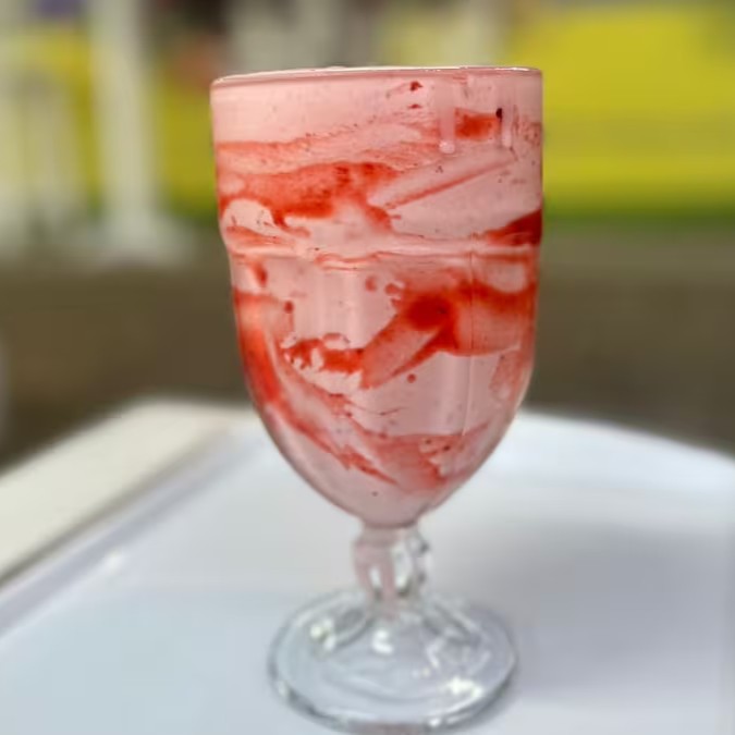 Suco natural de morango com leite