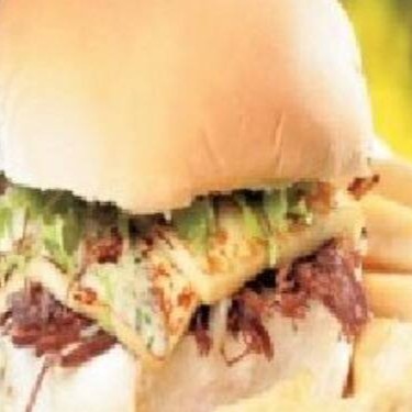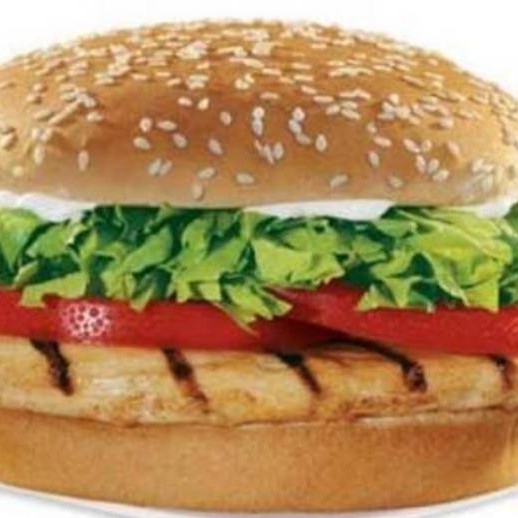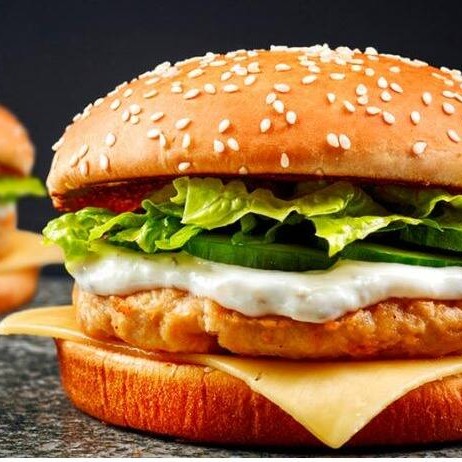 Pão bola, hambúrguer tradicional, queijo, frango em cubos, molho especial, cebola, tomate, alface.