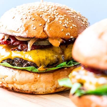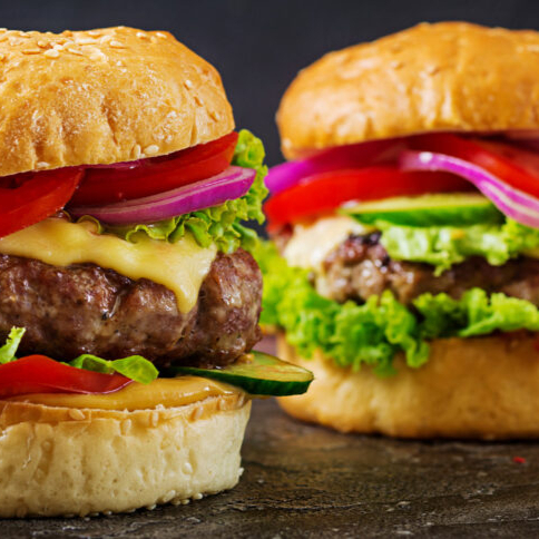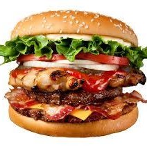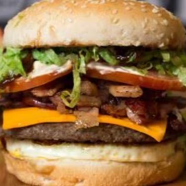 Pão bola, hambúrguer tradicional, queijo, frango, bacon, Cheddar, molho especial, cebola, tomate, alface.