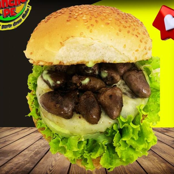 Pão brioche especial, Hambúrguer Artesanal 100g, Queijo Mussarela, Coração grelhado, Molho Especial, Cebola dourada, Tomate, Alface.