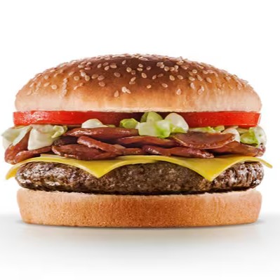 Pão bola Especial, hambúrguer artesanal 100g, queijo mussarela , bacon, tomate, cebola dourada, alface.