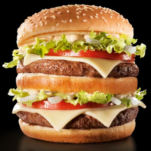04 Hambúrguer tradicional, Queijo Triplo ( Mussarela, Cheddar e Catupiry), Presunto Duplo, 02 ovos, 02 salsichas, Calabresa, milho verde, ervilha, batata palha, molho especial, tomate, cebola, alface.
