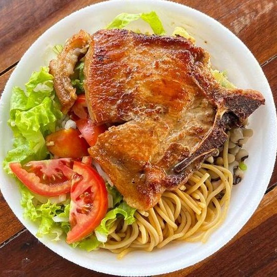 Almoço Individual, Bisteca Suína temperada com tempero caseiro. Acompanha. Feijão, Arroz, Macarrão, Salada, Batata Frita. Tudo a seu gosto, exclusivamente escolhido por você.