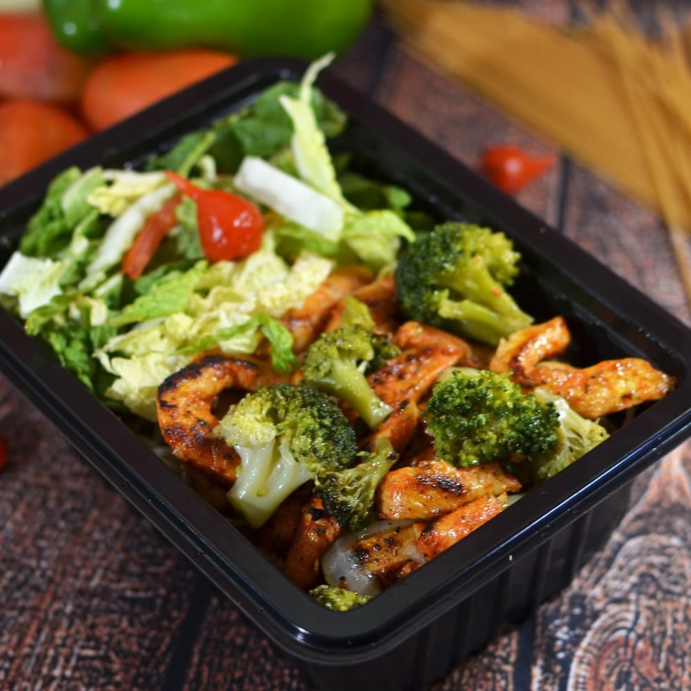 Tiras de peito de frango temperadas e suculentas, refogadas com brócolis fresquinho, formando uma combinação leve, saborosa e nutritiva. Um prato versátil para quem gosta de personalizar a refeição do seu jeito. Proteína: 🍗 Frango com brócolis: 200 g total • 100 g de peito de frango em tiras • 100 g de brócolis refogado com o frango Escolha até 5 acompanhamentos: 🥘 Feijão com caldo — 200 g 🍚 Arroz branco — 120 g 🍝 Macarrão — 120 g 🌽 Farofa — 20 g 🥗 Salada — 25 g Embalagem: acondicionada em marmita de 750 ml, lacrada e selada, garantindo higiene, conservação e qualidade até você.