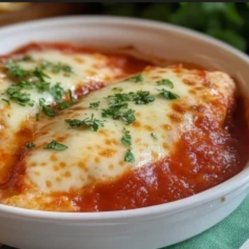 Parmegiana de Frango Um suculento filé de frango empanado na medida certa, coberto com um molho de tomate encorporado e cheio de sabor. Finalizado com queijo derretido, com macarrão bem temperado e uma batata frita crocante