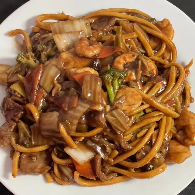 Macarrão + Frango + Carne + Camarão + Legumes.