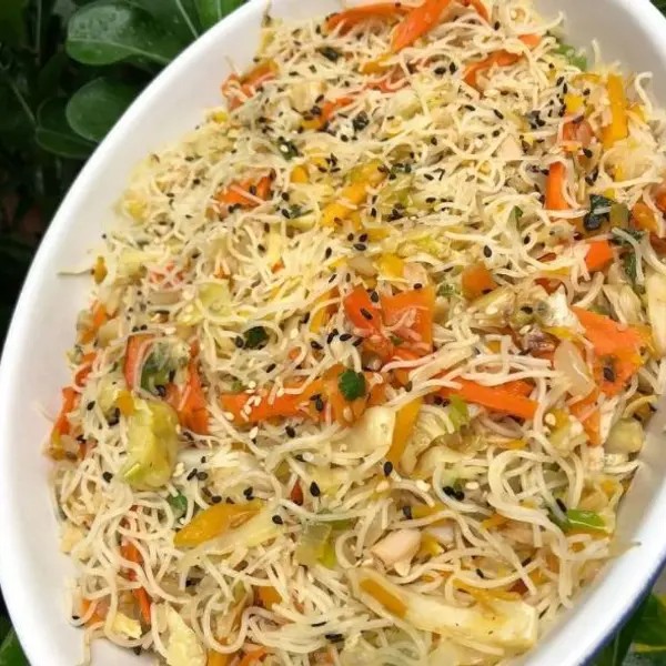 Macarrão De Arroz + Carne + Ovos + Legumes.