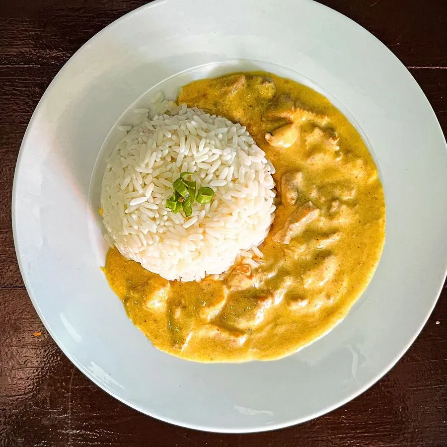 Nosso delicioso strogonoff de frango, acompanha arroz e batata.