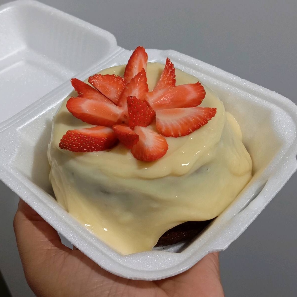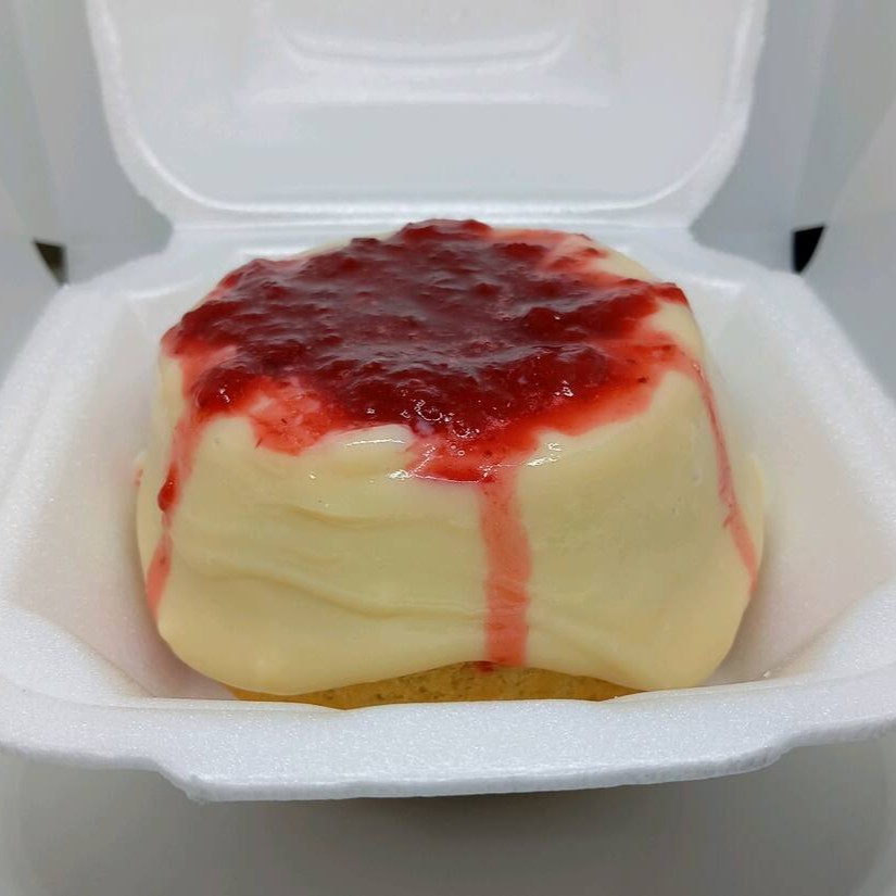 Uma combinação irresistível! Massa branca amanteigada, fofinha e saborosa, com pedacinhos de morango fresco no centro, criando um recheio suculento e natural. Por cima, uma cremosa cobertura de leite Ninho, finalizada com uma delicada geleia de morango que traz o toque perfeito de cor e sabor. Um doce que encanta no visual e apaixona no primeiro pedaço! Aprox .400g