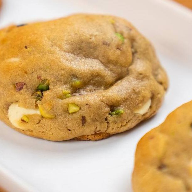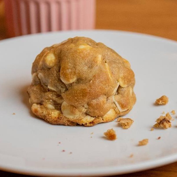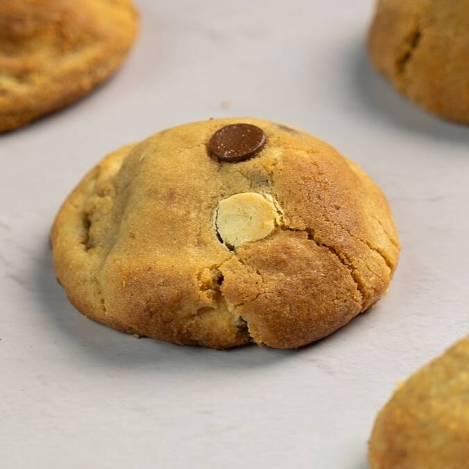 Massa tradicional Nyc com gotas de chocolate branco nobre e amêndoas laminadas. Aproximadamente 120g