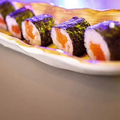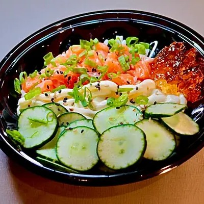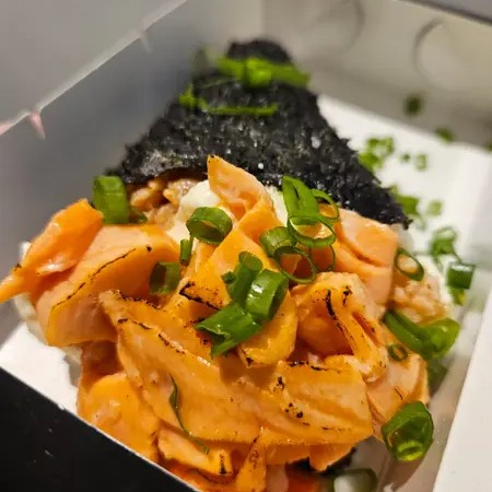 Uma explosão de sabores em porção ideal: salmão fresco, arroz temperado, cream cheese cremoso, sunomono, gergelim e cebolinha e mais salmão com cream cheese. Finalize com um toque especial de geleia de pimenta (opcional) para um leve contraste agridoce.