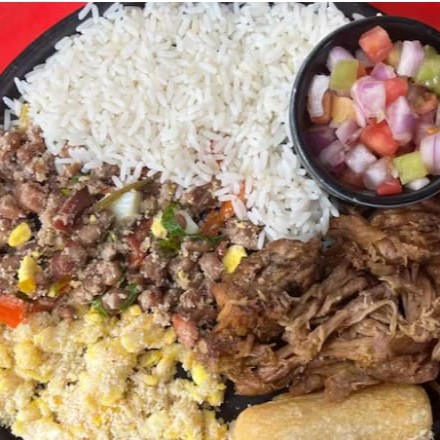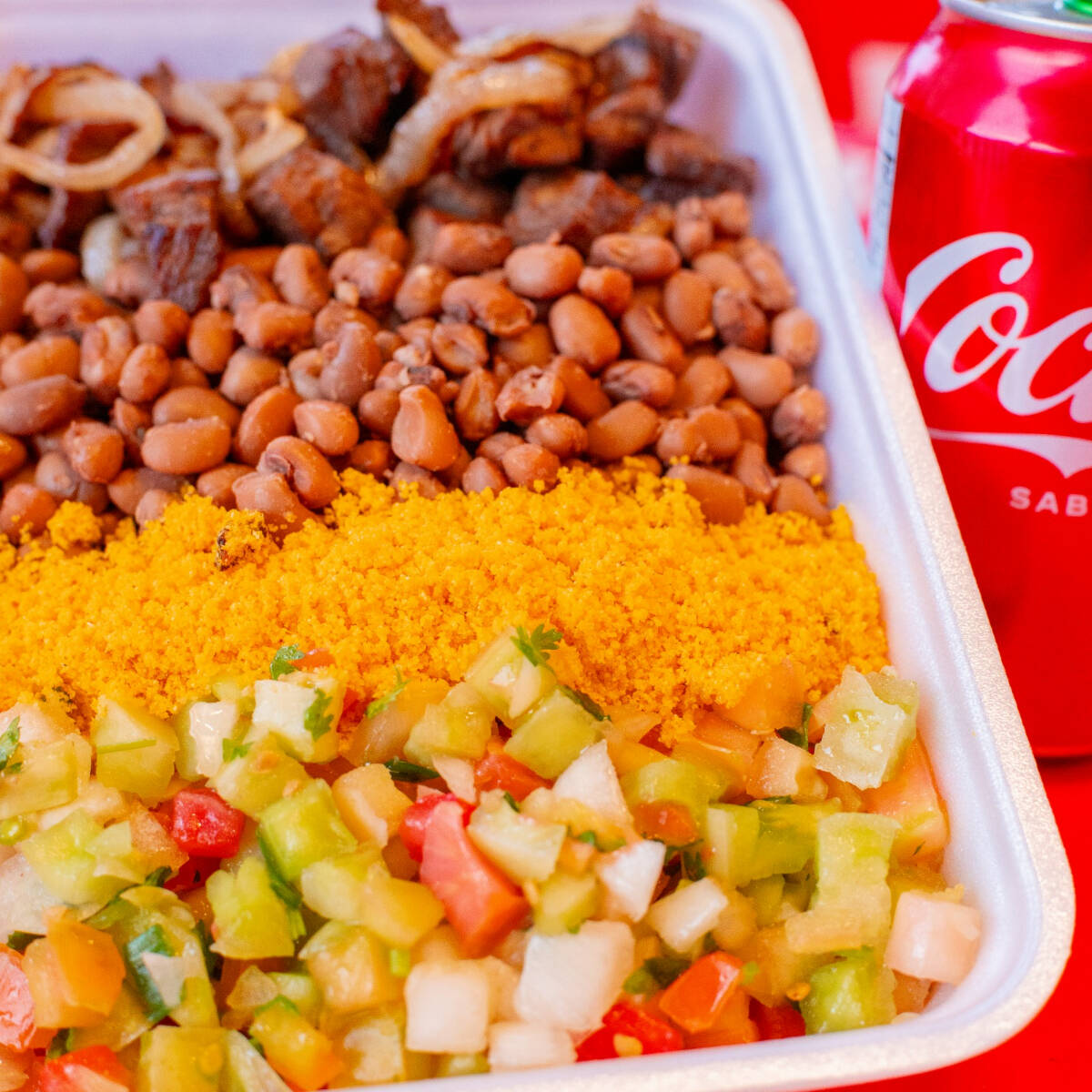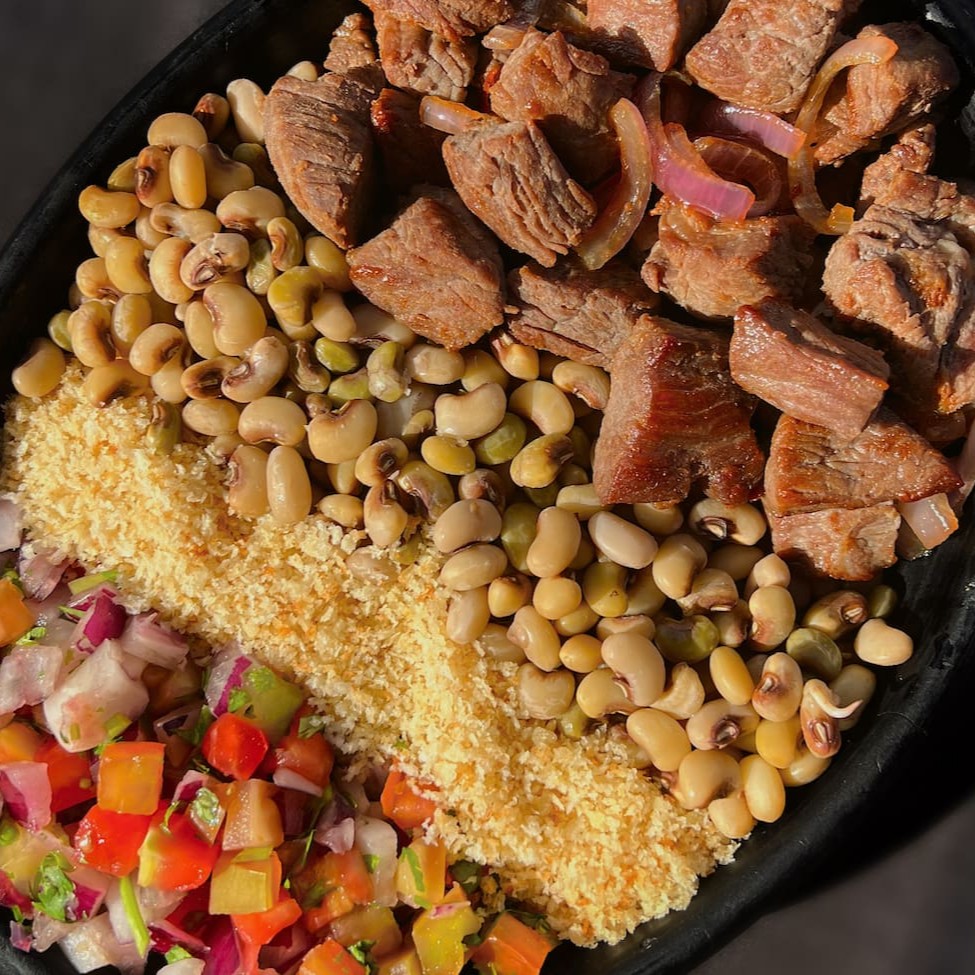 Este prato, ideal para duas pessoas, apresenta uma harmoniosa combinação de feijão caipira (com ovos), perfeitamente cozido, arroz soltinho, macaxeira frita crocante, farofa delicadamente temperada, vinagrete fresco e vibrante Tudo preparado com muito carinho e atenção aos detalhes para proporcionar uma experiência gastronômica memorável.