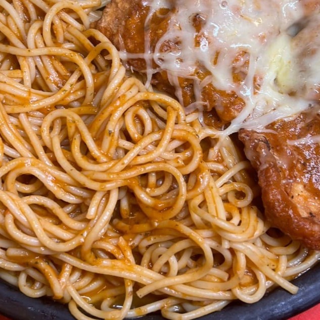 Temos a Dedicação para entregar comida quentinha e saborosa no conforto da sua casa Filé de peito , servido c/ spaghetti grano duro ao molho de tomate e uma deliciosa porção de purê de batata
