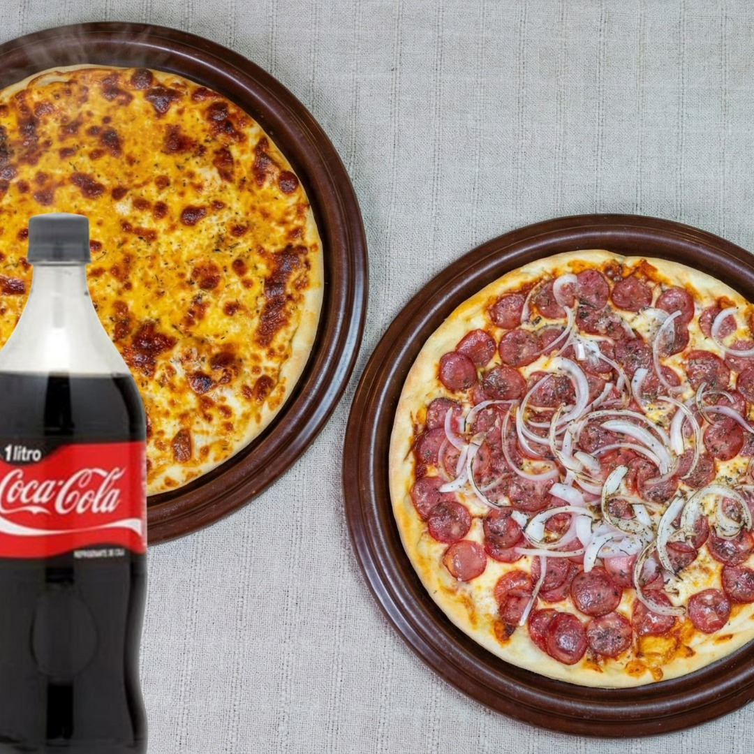 Combo Pizza de Calabresa e Pizza de Mussarela + coca cola 1 litro