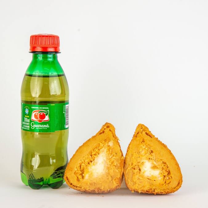 Coxinha de 120g empanada na farinha panko no sabor de frango cremoso + refri 200ml geladinho Sabor premium e crocância na medida certa