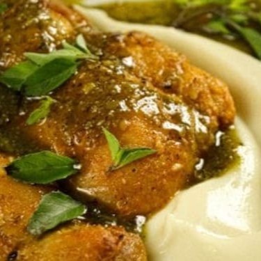 Sobrecoxa De Frango Ao Pesto Com Purê De Batata Doce