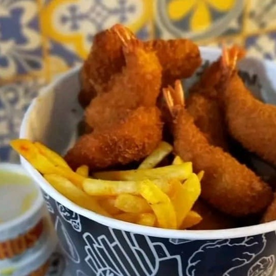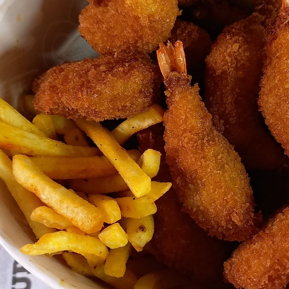 Balde De Crispy's De Camarão Com Fritas