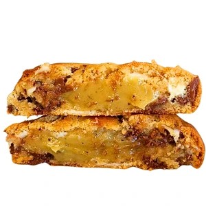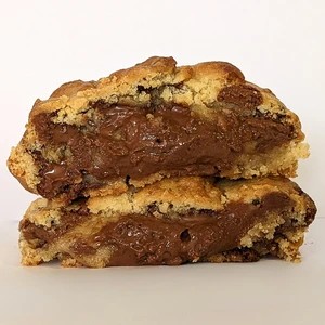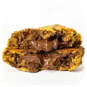 Massa tradicional de baunilha com gotas de chocolate ao leite e meio amargo, recheado com muita Nutella de verdade e um um irresistível brigadeiro de leite Ninho. Aprox. 100g