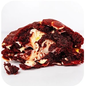 Massa vermelha com um toque de cacau e gotas de chocolate branco, recheada com Ninho cremoso. Aprox. 100g