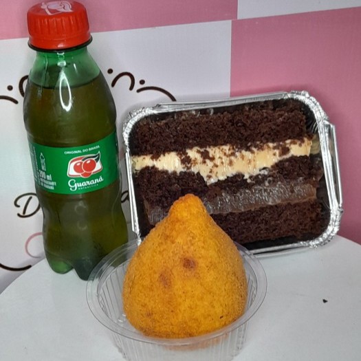 1 Fatia torta 1 coxinha de frango na farinha panko 1 caçulinha antártica