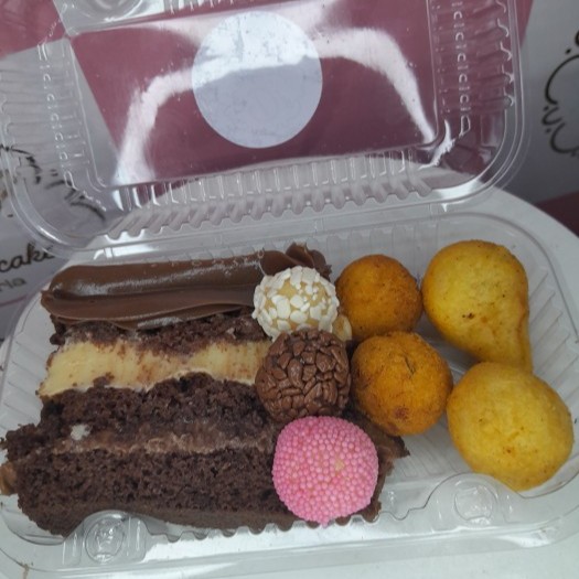 1 fatia de torta 4 Salgados 3 doces