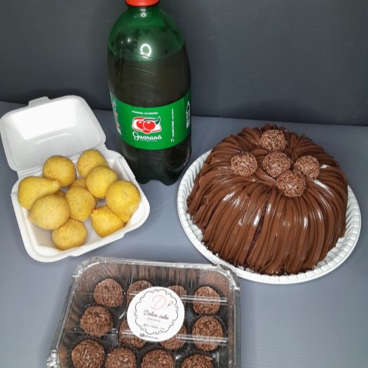 1 vulcão 1kg 12 doces 12 gramas 12 coxinhas P 1 refri 1L