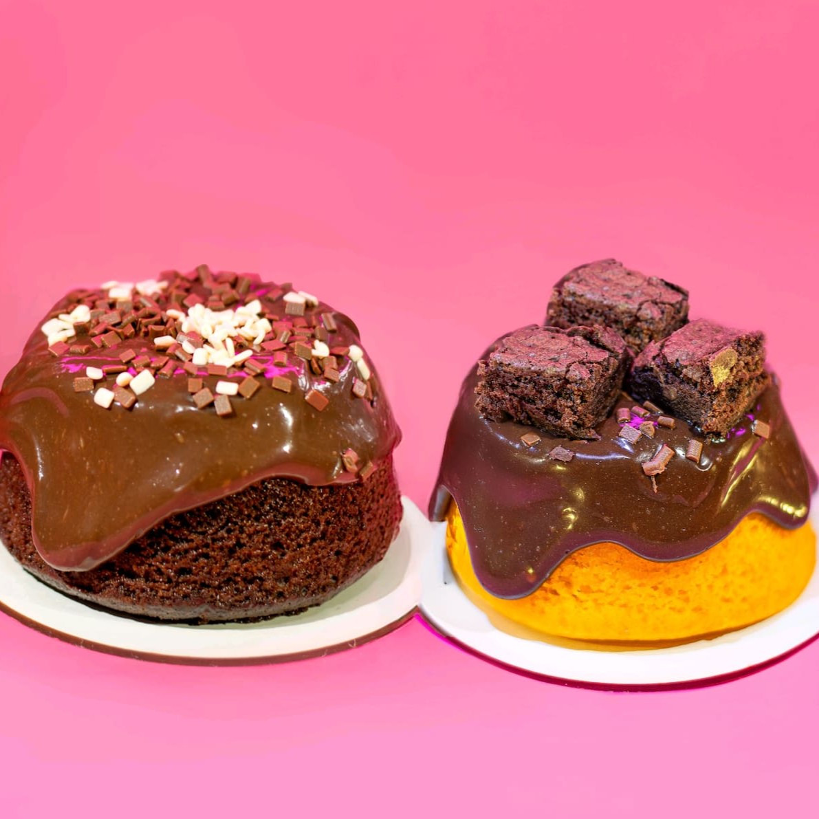 1x bolo de cenoura com um cremoso brigadeiro de chocolate 1x bolo de chocolate brigadeiro de chocolate 50%. cada um com aproximadamente 400g serve até 4 pessoas....