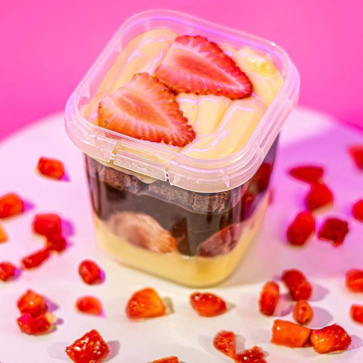 Pote da felicidade , a mistura maravilhosa do morango fresco com aquele brownie maravilhoso com brideiro branco e brigadeiro de chocolate 50% cacau gerando uma explosão de sabores... 220g. serve até 1 pessoa..