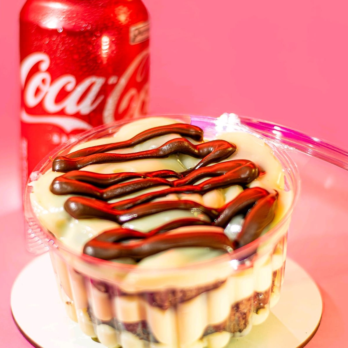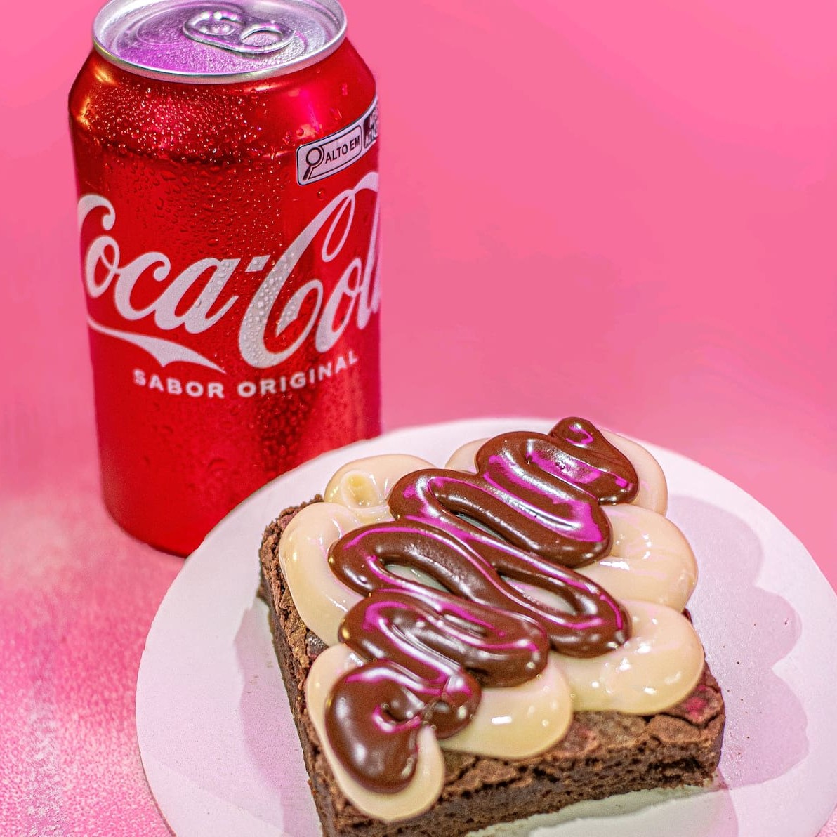 Delicioso brownie com brigadeiro cremoso de Ninho com um excepcional creme de avelã, acompanhado de uma refrescante coca -cola em lata de 350ml..