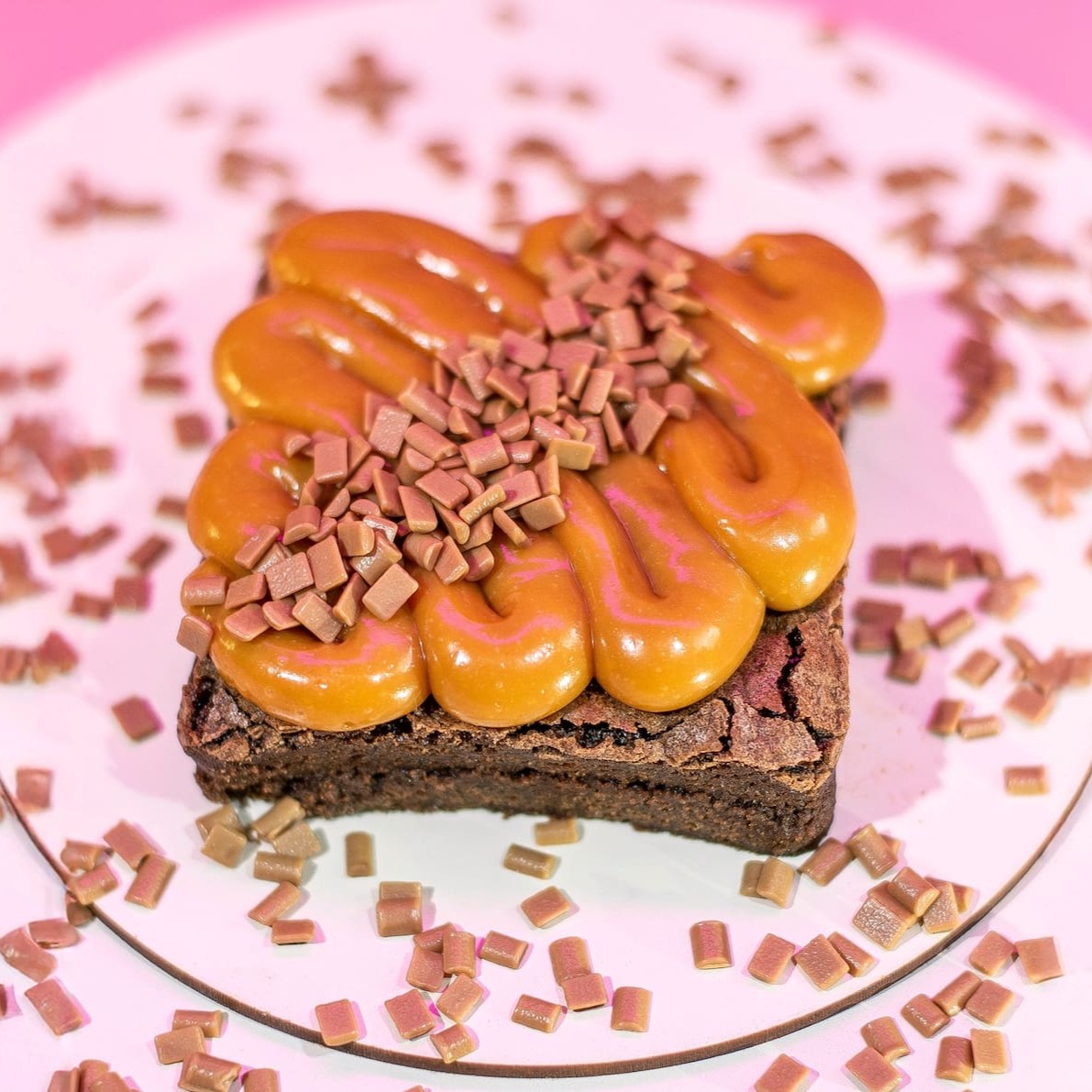 Maravilhoso brownie com um cremoso brigadeiro de doce de leite finalizando com um granulado granulê.... 120g
