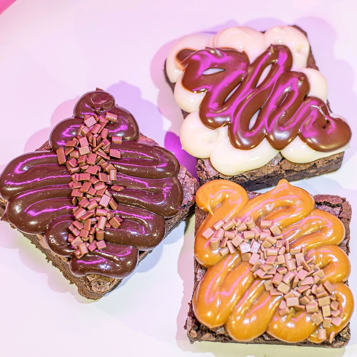 Vamos lá! Imagine um combo irresistível que combina o melhor dos brownies com duas coberturas de brigadeiro de dar água na boca. Primeiro, temos o brownie, com sua textura fudgy e rica, que derrete na boca. Em cima dele, um brigadeiro de Ninho, cremoso e suave, que traz aquele sabor reconfortante do leite em pó, combinado com a intensidade do creme de avelã. Essa mistura cria uma explosão de sabores que é ao mesmo tempo doce e levemente aveludada. Ao lado, outro brownie igualmente delicioso é coberto com um brigadeiro de chocolate, que é rico e profundo, trazendo um sabor intenso que encanta os amantes de chocolate. A combinação da textura densa do brownie com a cremosidade do brigadeiro cria uma harmonia perfeita Esse combo é uma verdadeira festa para o paladar, onde cada mordida oferece uma nova experiência: a suavidade do brigadeiro de Ninho com a crocância do creme de avelã e a riqueza do brigadeiro de chocolate se complementam maravilhosamente, tornando cada pedaço uma delícia