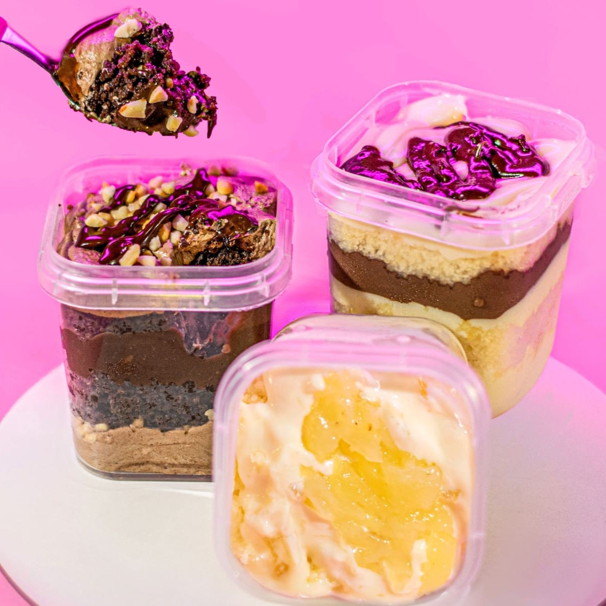 Bolo no pote com uma maravilhosa massa de baunilha com um delicioso brigadeiro de côco cremoso e uma delícia de abacaxi sensacional .. 220g. serve até 1 pessoa