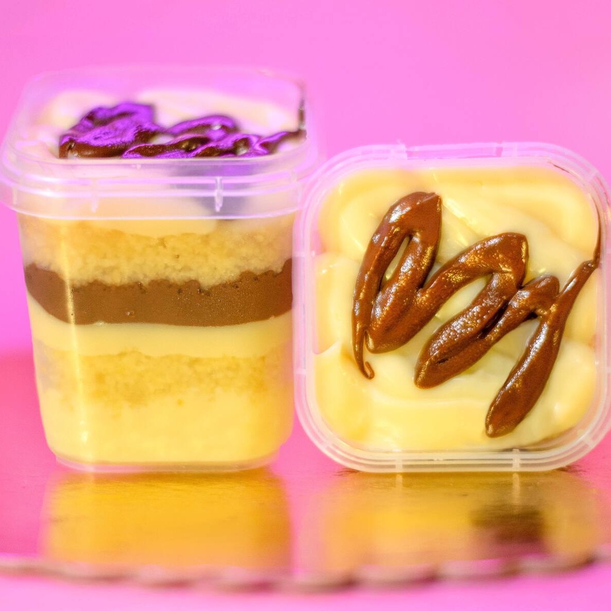 Bolo no pote com massa de baunilha, um cremoso brigadeiro de Ninho e um creme de avelã maravilhoso..... 220g. serve até 1 pessoa