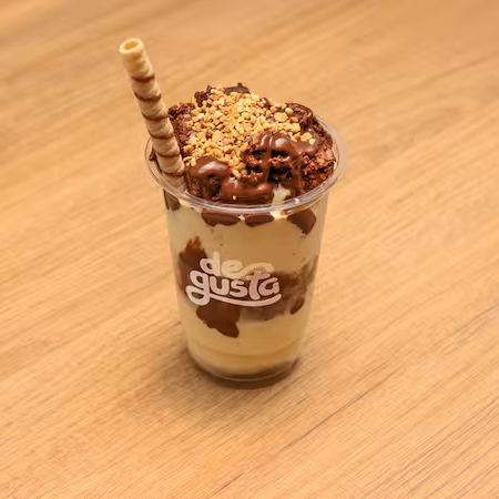 Sorvete com notas suaves de amendoim, recheio de caramelo salgado, recheio de chocolate ao leite e cobertura de caramelo. Você merece vivenciar a experiência dos Novos Gelatos Degusta.