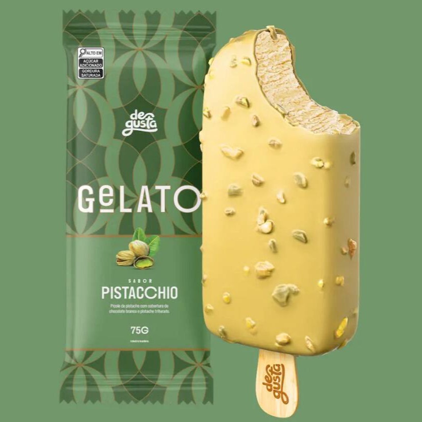 Picolé de pistache com cobertura de chocolate branco e pistache triturado