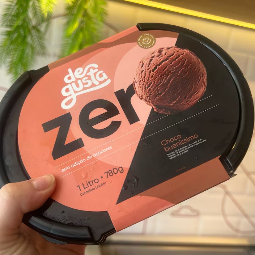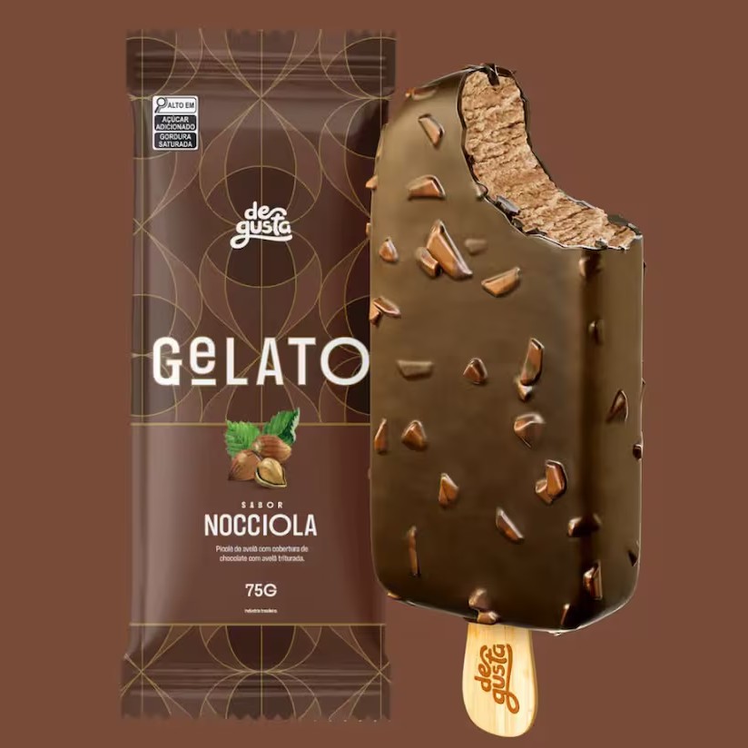 Sorvete de Chocolate com avelã, com recheio de avelã crocante. Zero adição de açúcares.