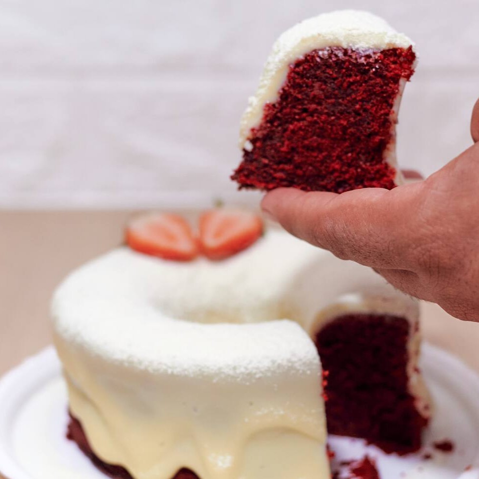 Clássico, lindo e delicioso! Massa red velvet macia com cobertura de leite Ninho cremosa, que deixa um gostinho de quero mais. Rende em média 8 fatias (aprox. 700g). Perfeito para compartilhar.