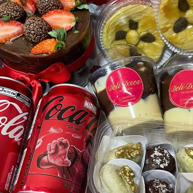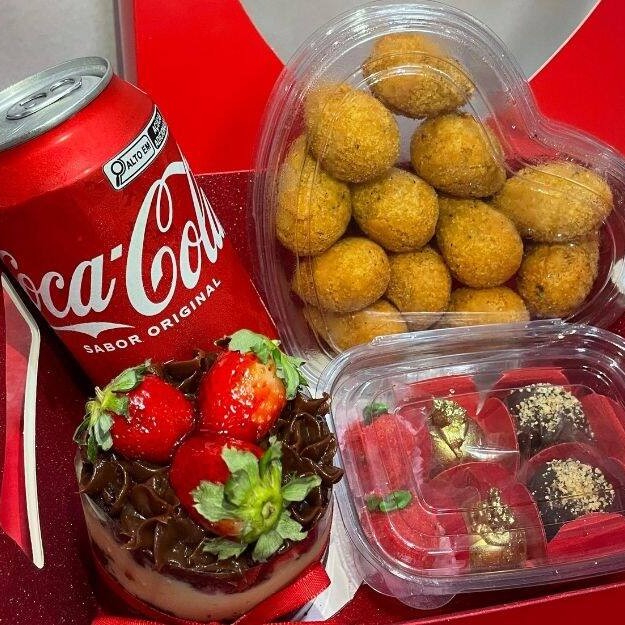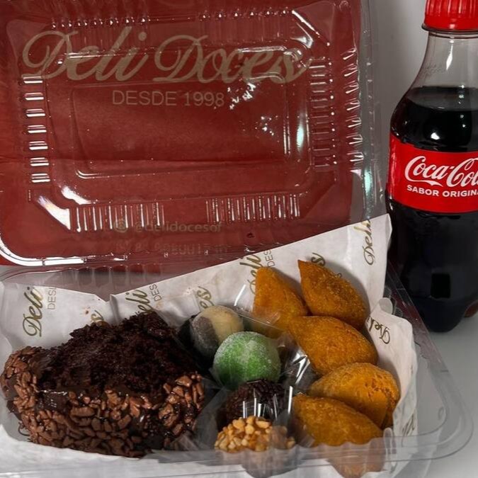 1 torta chocolatuda de 600g + 1 empada na marmita no sabor de frango cremoso 500g + 4 coxão crocantes super recheados com sabores variados + 8 docinhos de festa + 1 Coca-Cola de 1l. O combo perfeito pra compartilhar com a galera. Sabor e fartura! Segue :