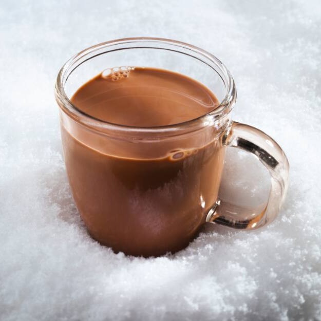 Expresso, leite vaporizado e ganache de chocolate e gelo