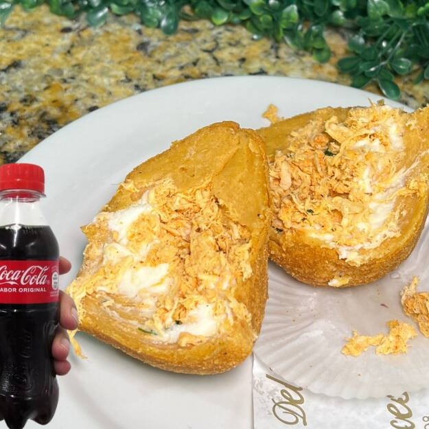 Deliciosa coxinha Grande com massa bem crocante e uma coca bem geladinha. Segue :