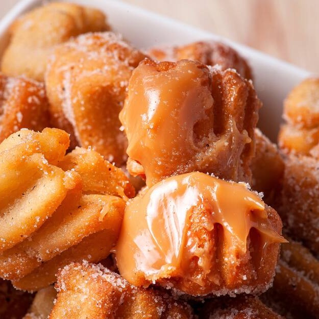 Mini churros crocantes e recheados. Acompanhamento ideal pra sua sobremesa! Segue :