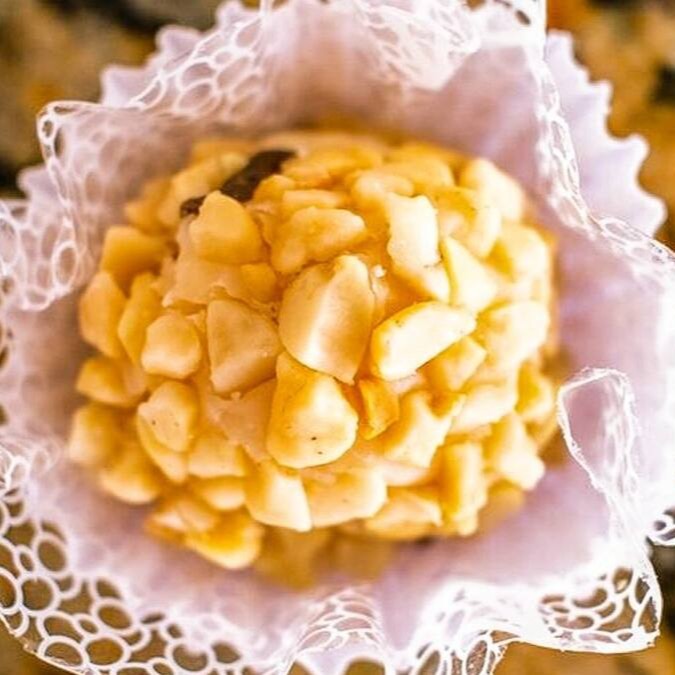 Delicioso brigadeiro branco acompanhado de coco fresco para formar essa explosão de Segue :
