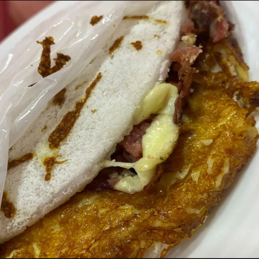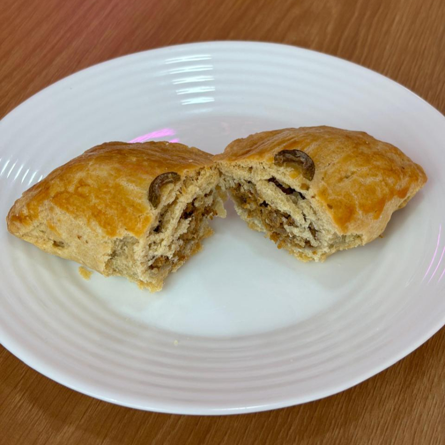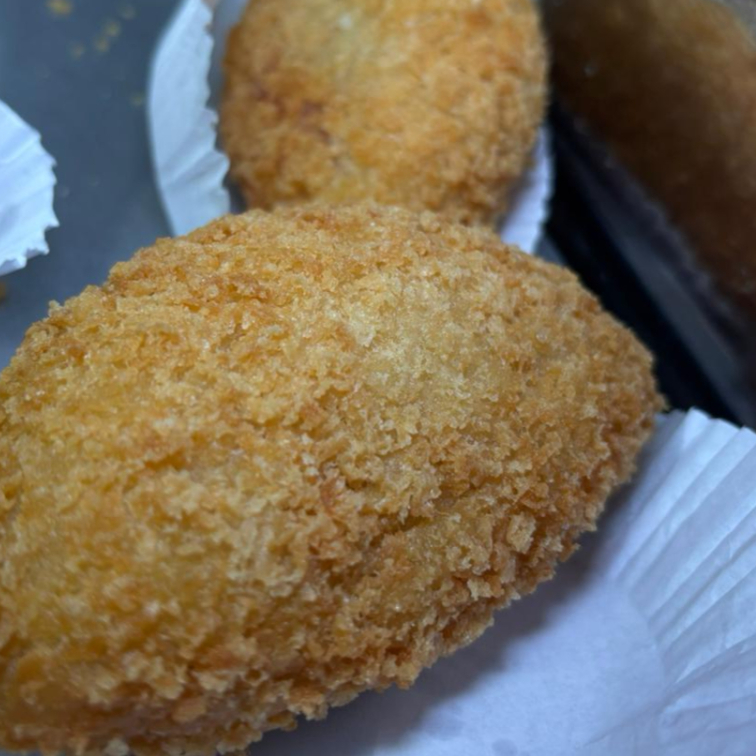 Massa de leite com recheio de presunto e queijo, polvilhado com farinha panko