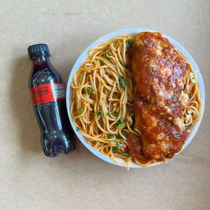 Espaguete & Parmegiana Frango + Lata Coca Zero + R$ 14,99 Leve Outra Marmitex
