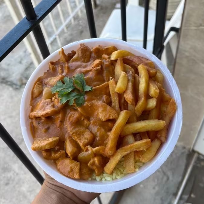Uma combinação perfeita de arroz, frango , e batata frita. Ideal para quem ama um bom almoço caseiro!