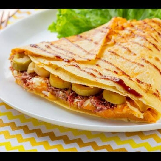 Um crepe delicioso, você escolhe o recheio e os acompanhamentos
