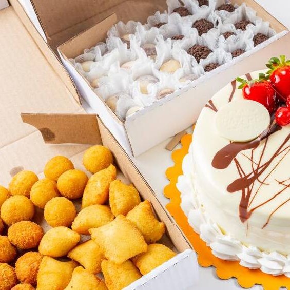 Torta 2kg sabor bem casado + 120 salgados e 100 doces.